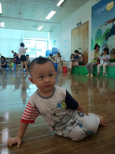 今天7点多,大锤哭醒,老妈煮完粥,大锤喝完奶,我就一个人带他去玩了,带了水和粥。